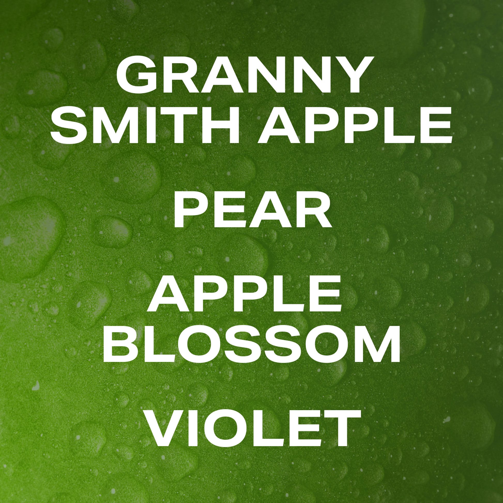 "I was inspired by the feeling of biting into a crisp green apple—tart yet sweet. It's a medley of fresh fruit: juicy pear, crisp apple, and watermelon meet the bloom of apple blossom and dragonfruit. These vibrant scents are then wrapped in a velvety praline and creamy musk nectar. It's a new take on a classic fruity scent."