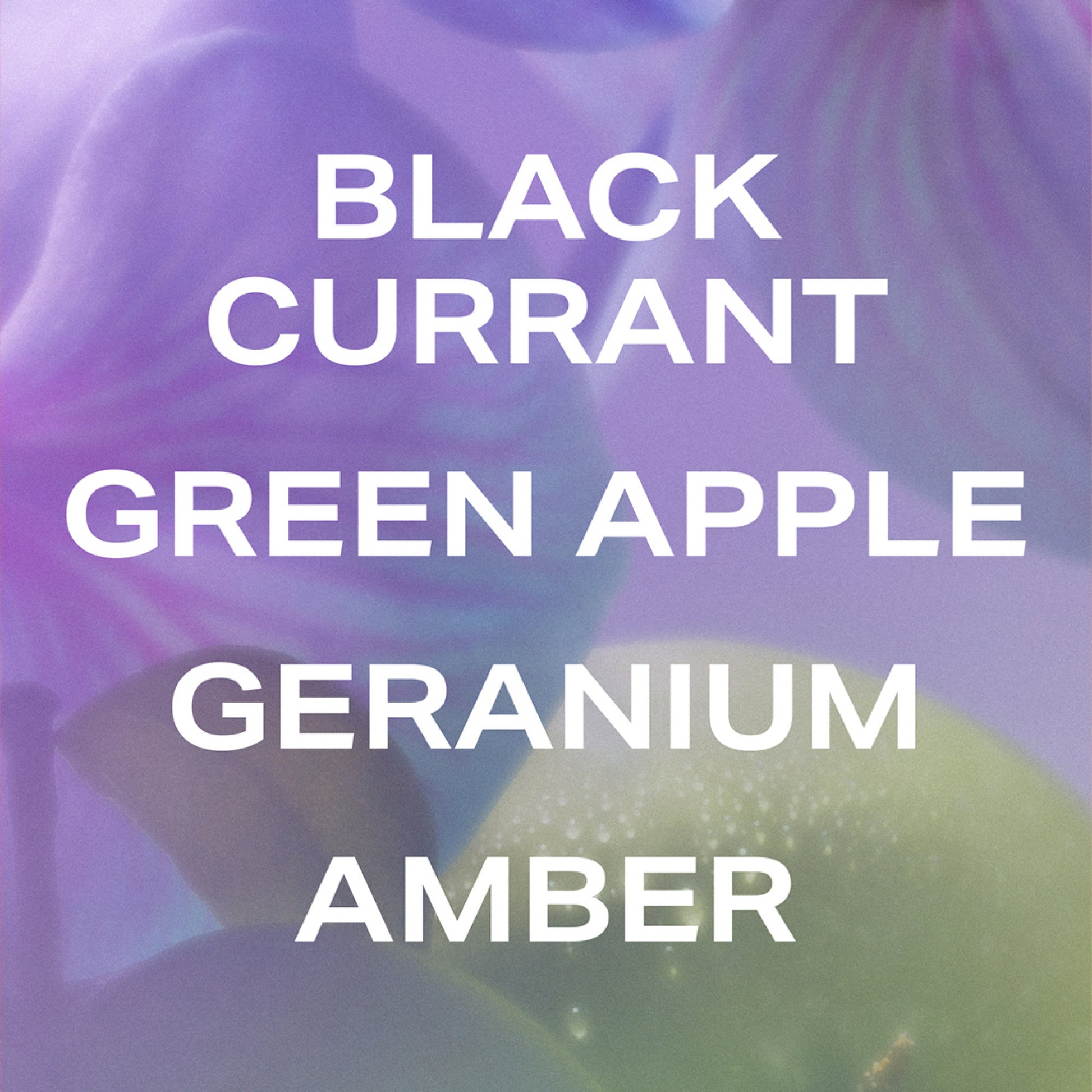 A vibrant harmony of green apple, pineapple, and black currant awakens the senses with a crisp and juicy brightness. The heart reveals a sparkling blend of lemon zest, mandarin orange, jasmine, and geranium, balancing citrusy freshness with soft floral elegance. As it lingers, the fragrance settles into a warm, sensual base of sandalwood, vanilla, and amber, wrapping the skin in a smooth and sophisticated allure.